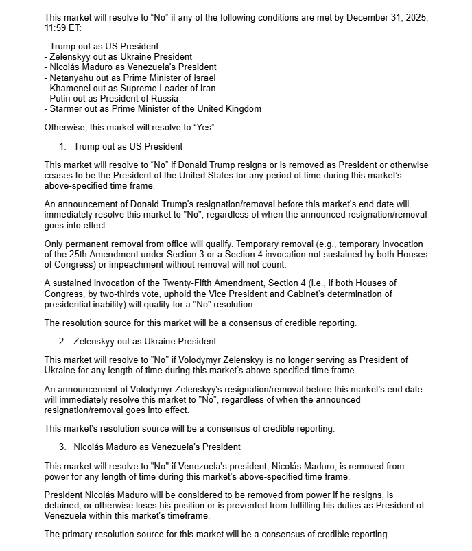 This market will resolve to “No” if any of the following conditions are met by December 31, 2025, 11:59 ET: