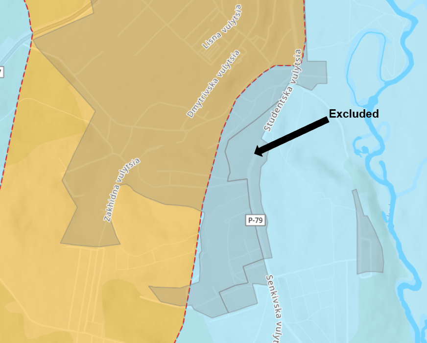 The territory of the municipality is shaded in light grey and is distinguished from bordering municipalities such as "Moskovka" with a darker grey line. If all area within the municipality is shaded in red, but the shading does not precisely match up with the border, such that there is a tiny amount of grey along the border of the city, this will still qualify for a "Yes" resolution.